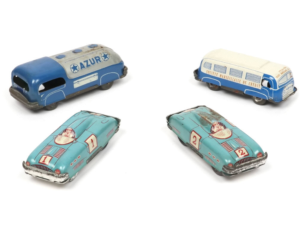 C.R. (FRANCE) Ensemble de 4 véhicules en tôle lithographiée