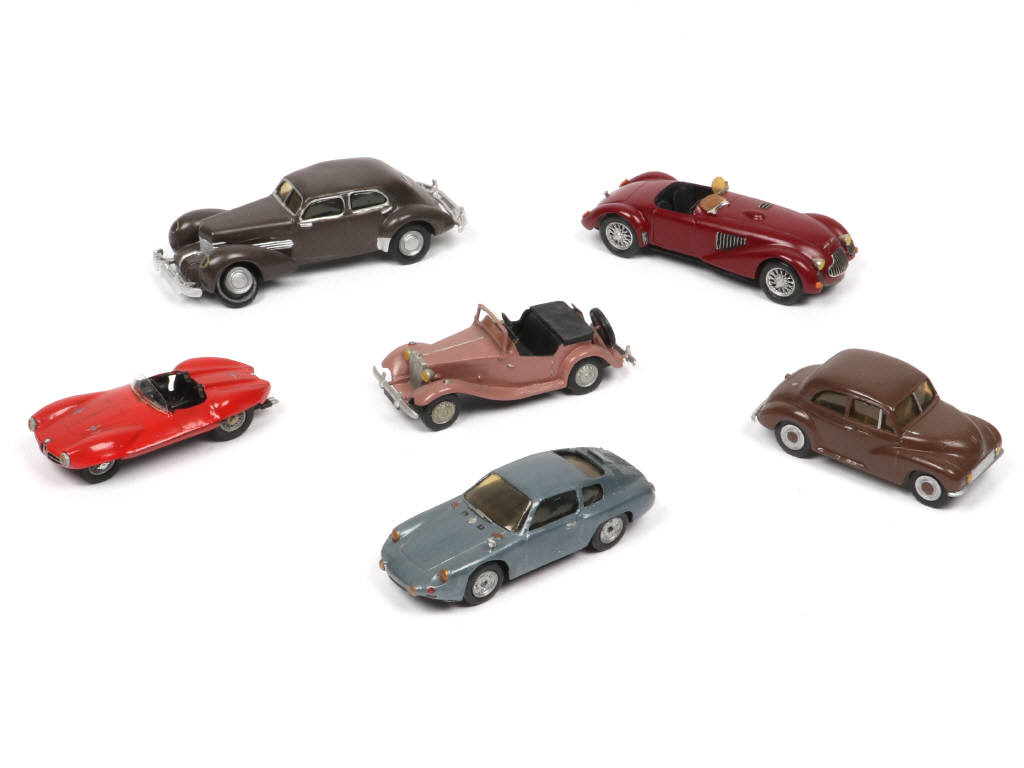 kits en white métal - comprend notamment les modèles : LANCIA, PORSCHE, ALFA ROMEO & MG - on y retrouve les marques : MOTORKITS, MARQUE PRODUCTS & AUTOSTYLE - quelques petits éléments à recoller