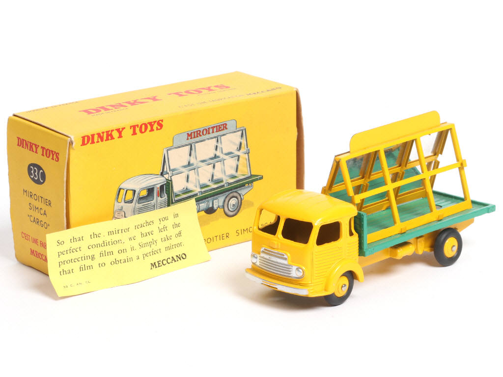 DINKY TOYS (FRANCE) 33C SIMCA CARGO Miroitier 'SAINT GOBAIN' (version export sans publicité) jaune, plateau vert & jantes jaunes