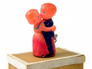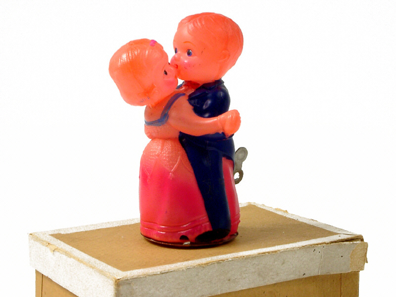hauteur 11 cm - moteur à ressort (fonctionne) - en celluloïd - en action, le couple tourne sur lui-même puis avance - on y joint une boîte non d'origine - 11 cm tall - clockwork mechanism (in working condition) - celluloïd - in action, the couple turn in a circle then move forward - we've added a box (not original)