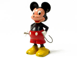 hauteur 18 cm - moteur à ressort (fonctionne) - en action, la queue de MICKEY se met à tourner - manque le nez - 18 cm tall - clockwork mechanism (in working condition) - in action, Mickey's tail turns - nose missing