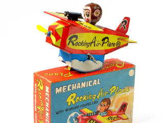 longueur 16 cm - en tôle lithographiée - moteur à ressort (fonctionne) - en action, l'avion se balance en avant & en arrière tandis que son hélice tourne - 16 cm long - lithographed tinplate - clockwork mechanism (in working condition) - in action, the plane rocks back & forth & the propeller spins