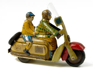 longueur 19,5 cm - avec conducteur & passager - moteur à friction (fonctionne) - avec bruiteur - parties restaurées - quelques petites traces d'oxydation