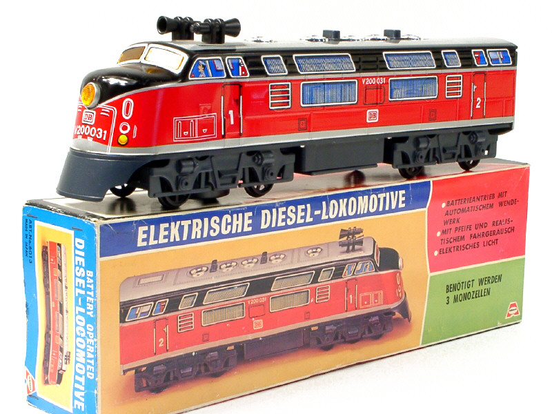 MASUDAYA TOYS Co. (JAPON) 73 Motrice diesel type V200031 en tôle lithographiée rouge, noir & gris