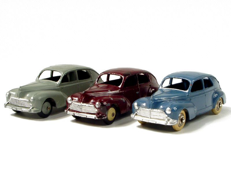 DINKY TOYS (FRANCE) 24R PEUGEOT 203 Petite lunette arrière (version avec intérieur de toit lisse & feu de stop) gris moyen, jantes identiques