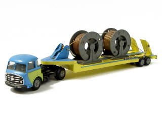 C.I.J. (FRANCE) 4/75 SAVIEM LRS Semi-remorque surbaissée porte-bobines de câble bleu & jaune vert