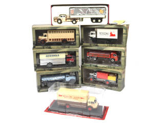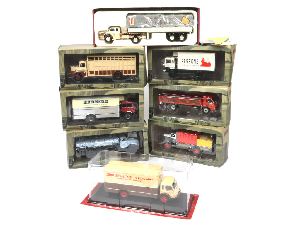collection 'CAMIONS D'AUTREFOIS' - comprend notamment les modèles : MERCEDES, UNIC, BARREIROS, VOLVO & BERLIET - on y joint un camion RENAULT des EDITIONS HACHETTE & un BERLIET semi-remorque de la marque CORGI TOYS
