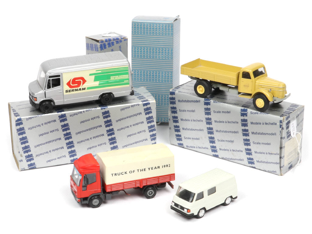 comprend les modèles : VOLVO, IVECO (bâche avec petite décoloration) & MERCEDES - boites avec quelques petits manques de papier & étiquettes sur certains rabats