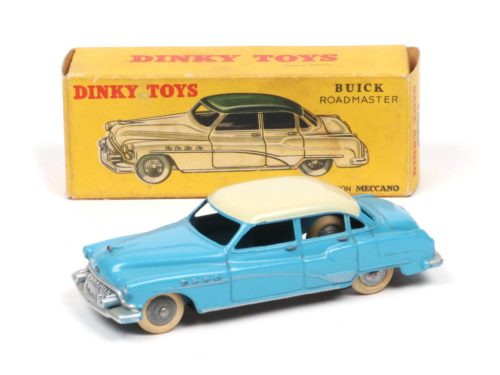 DINKY TOYS (FRANCE) 24V BUICK ROADMASTER (version avec intérieur de toit quadrillé & jantes chromées) bleu, toit crème