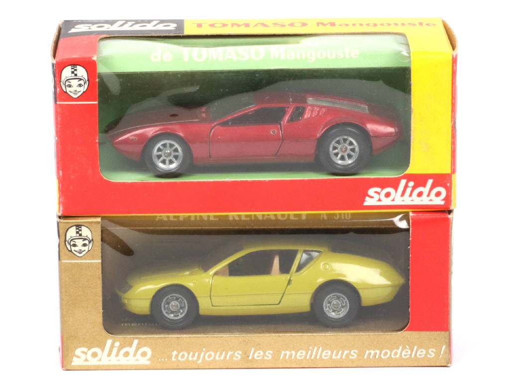 comprend les modèles : ALPINE RENAULT A310 (manques de papier sur les rabats de boîte) & DE TOMASO MANGOUSTE (quelques petits frottements sur la carrosserie par endroits)