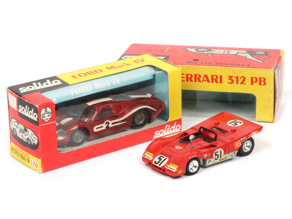 comprend les modèles : FORD MARK IV (avec planche de décalques) & FERRARI 312 PB (cale de boîte déchirée)