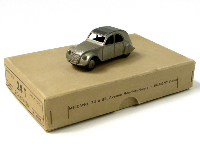 DINKY TOYS (FRANCE) 24T CITROËN 2CV (version avec un feu arrière) gris métal doré, axe de roues arrière non maté (type 1)