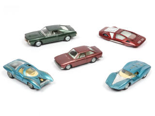 comprend les modèles : JAVELIN, FERRARI P5, CHEVROLET ASTRO I, SEAT 124 & MODULO PININFARINA (vitrage à recoller - manque volant & une vitre)