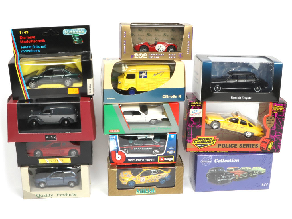comprend notamment les marques : BBURAGO, VITESSE, BRUMM, STARLINE MODELS & SCHABAK - on y retrouve notamment les modèles : RENAULT FREGATE, AUDI 100 & LANCIA ARDEA 800 - boîtes en états 'a' à 'b'