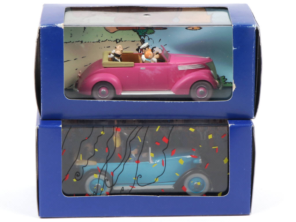collection 'EN VOITURE TINTIN' - étiquettes sur certaines boites - quelques emballages en état 'c'