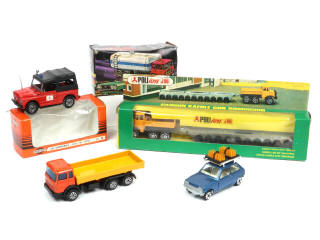 comprend : RENAULT 5, camion-benne basculante FIAT, 'VIGILI DEL FUOCO' & camion KAEBLE avec remorque boites en état 'b' - on y retrouve les marques : MERCURY, POLISTIL & POLITOYS