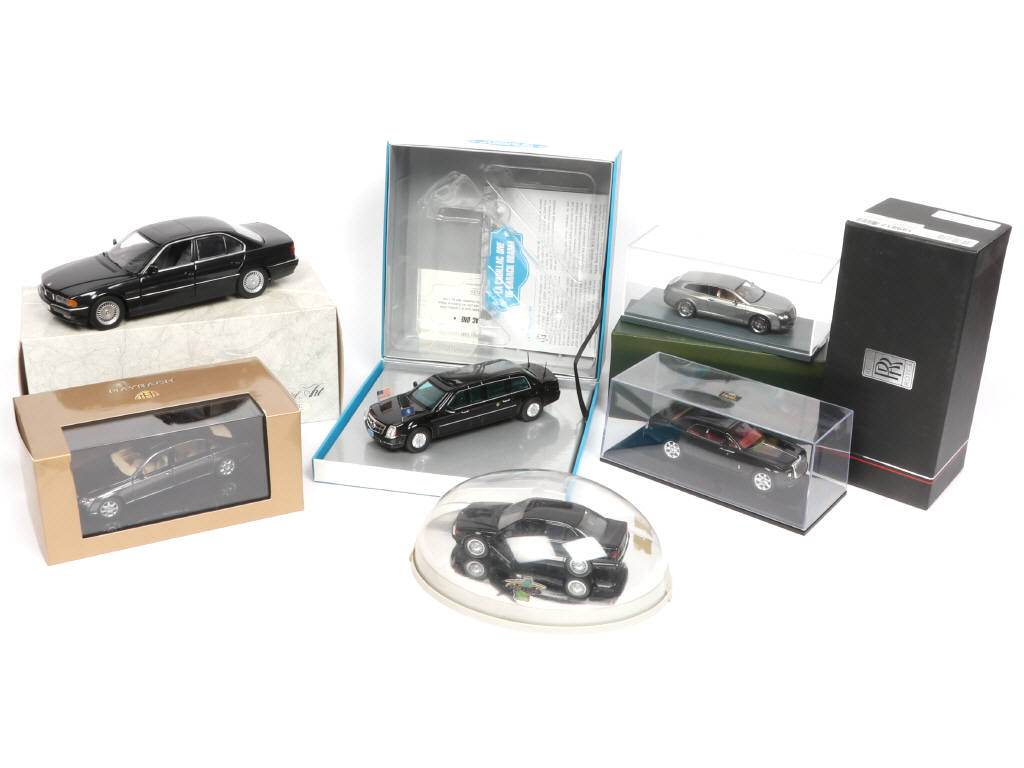 différentes échelles - comprend notamment les marques : SCHABAK, IXO MODELS & PAUL'S MODEL ART - on y retrouve notamment lesmodèles : BMW 7er, MAYBACH 62 & LA CADILLAC ONE DE BARACK OBAMA - boîtes en états 'a' à 'b'