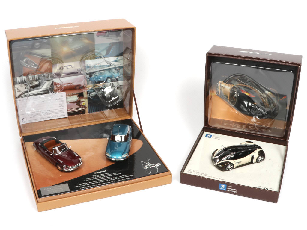 comprend : coffret CITROËN DS & PEUGEOT 4002 "Concept car Projet de Stefan Schulze Vainqueur du 2ème concours de design PEUGEOT - FRANCFORT 2003"