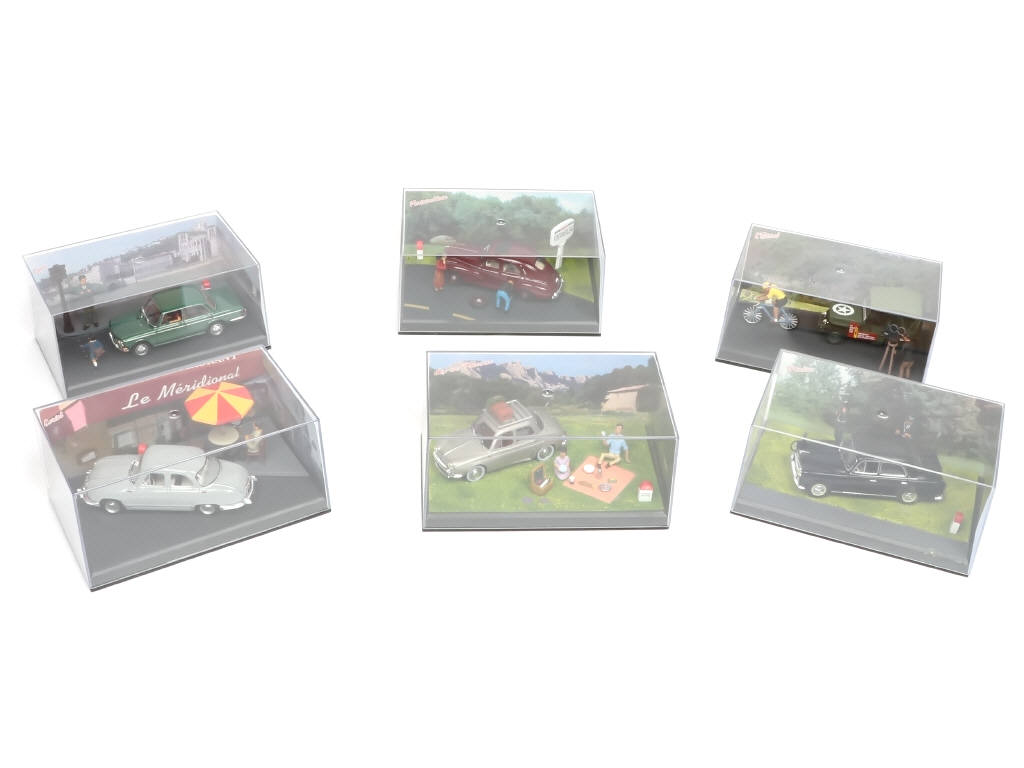 collection "La ROUTE BLEUE, LES PLUS BELLES ETAPES DE LE RN7" - miniatures reproduisant notamment les modèles : Le contrôle de vitesse & Le pique-nique - boîtes en états 'a' à 'b'