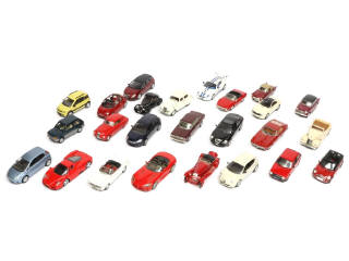 miniatures reproduisant notamment les modèles : FIAT 1500, PANDA, MASERATI GHIBLI & MINI COOPER cabriolet - carrosseries encrassées sur certains modèles - possibilité de petits manques & parties cassées