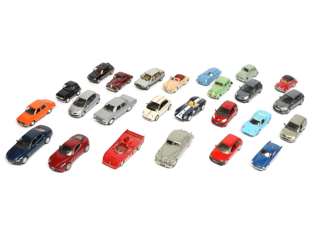 miniatures reproduisant notamment les modèles : MASERATI QUATTROPORTE, RENAULT 11, RENAULT 12 & RENAULT 5 - carrosseries encrassées sur certains modèles - possibilité de petits manques & parties cassées