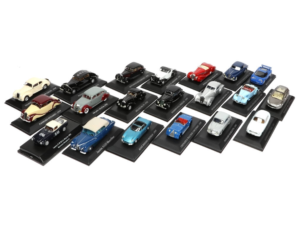miniatures reproduisant notamment les modèles : RENE BONNET MISSILE, SALMSON SPORT 2300S, TALBOT LAGO T26 RECORD COUPE & AUSTIN A125 SHEERLINE