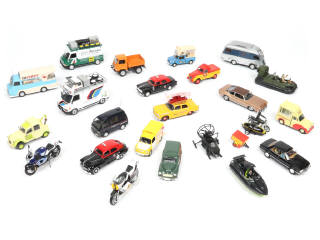 comprend notamment les modèles : AMC, PEUGEOT, CITROEN, PIAGGIO & MORRIS - on y retrouve notamment les marques : VANGUARDS, UNIVERSAL HOBBIES & ELIGOR - possibilité de petits éléments cassés & manquants