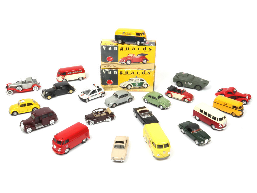 comprend notamment les modèles : VOLKSWAGEN, RENAULT, FACEL VEGA & CITROEN - on y retrouve notamment les marques : VANGUARD, SOLIDO, ERTL, BRUMM & LLEDO - avec petits manques & parties cassées