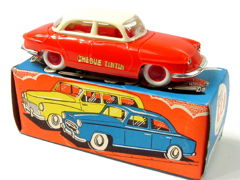 avec phares diamant - la mention 'CHEQUE TINTIN' est gravée en lettres dorées sur le côté droit de la voiture - ce modèle promotionnel pouvait être obtenu en échange de points que l'on trouvait à l'époque dans le journal de TINTIN - une jante légèrement fendue - très légère déformation du toit