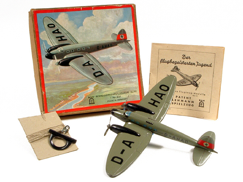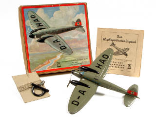 envergure 18,5 cm - immatriculation D-AHAO - complet avec crochet & ficelle de suspension - petit livret explicatif comportant les performances de l'avion, les photos de l'appareil & une illustration de propagande avec Adolf Hitler & Hermann Göering - fabrication de 1936 - SUPERBE !