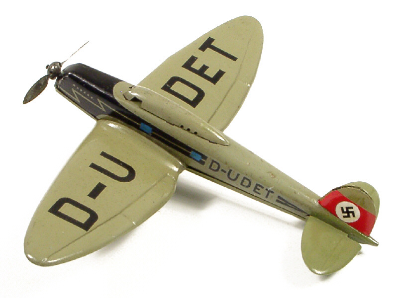 envergure 14 cm - dérive restaurée conforme à l'origine - il est à noter que les dérives de ces avions sont souvent restaurées du fait de la présence des croix gammées qui ont souvent été effacées - fabrication de 1936 - SUPERBE !