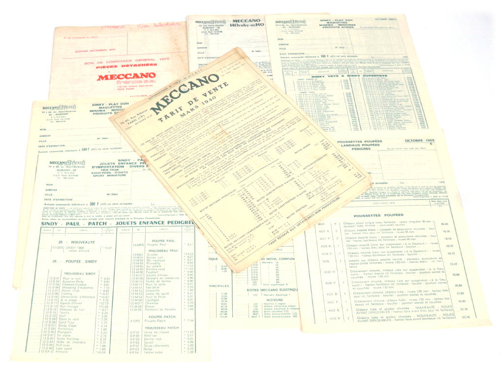MECCANO (FRANCE) Ensemble de 9 dépliants tarifaires