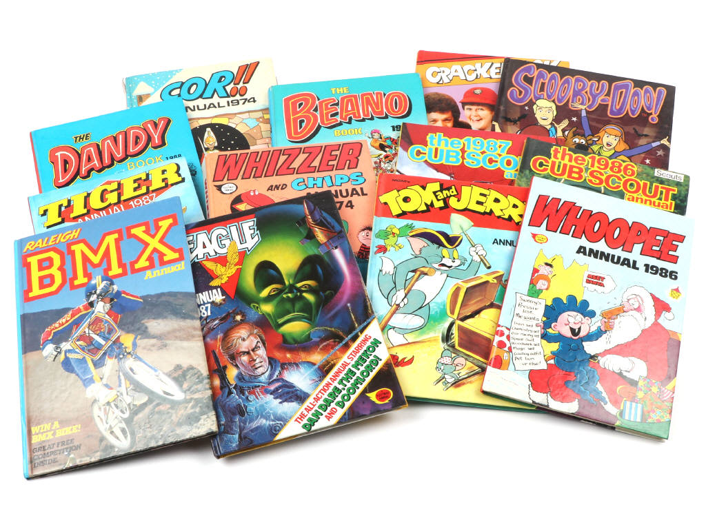 on y retrouve notamment les univers : THE DANDY, SCOOBY DOO, WHOOPEE & TOM & JERRY - livres en anglais - possibilité de pages manquantes ou déchirées