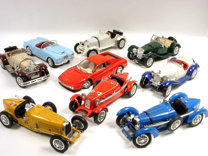 échelle 1/18ème - états de 'A' à 'B' - comprend : 2 MERCEDES, 2 BUGATTI, 2 ALFA ROMEO, une FERRARI, une JAGUAR & une LANCIA - petits manques