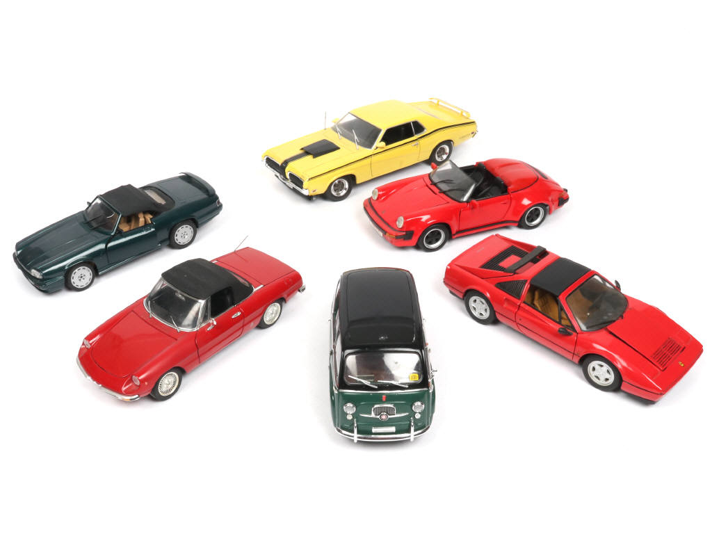 grandes échelles - miniatures reproduisant notamment les modèles : JAGUAR, FIAT & FERRARI - on y retrouve notamment les marques : CORGI TOYS, UNIQUE REPLICAS & RICKO - quelques petits accessoires manquants & légères restaurations (suivant les modèles)