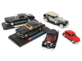 grandes échelles - miniatures reproduisant notamment les modèles : OLDSMOBILE, FACEL VEGA & FORD - on y retrouve notamment les marques : SUN STAR, SOLIDO & MAISTO (état 'C' avec accessoires cassés & manquants)