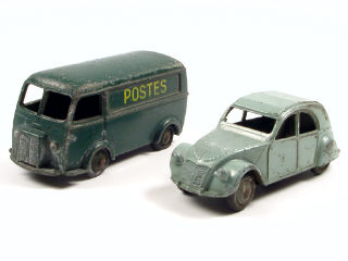 DINKY TOYS (FRANCE) 25BV PEUGEOT D3A 'POSTES' (première version avec inscriptions au tampon) vert foncé