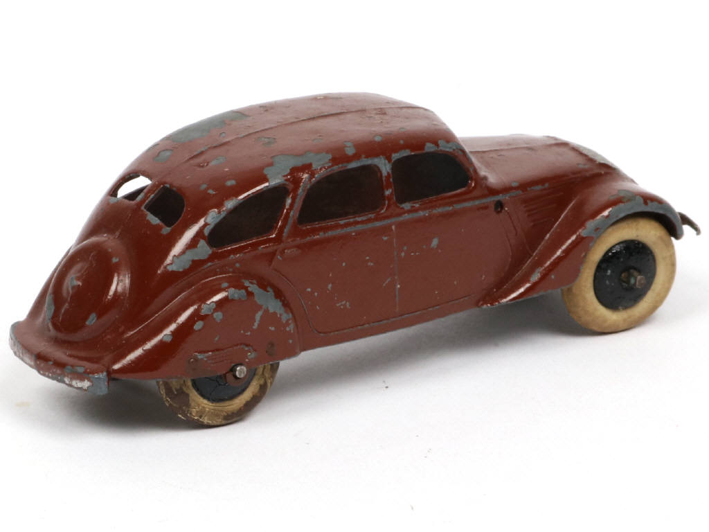 DINKY TOYS (FRANCE) 24K PEUGEOT 402 (version sans plancher & avec roues à pneus 'DUNLOP') marron