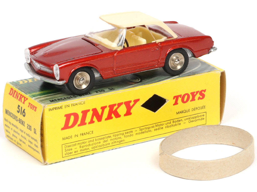 DINKY TOYS (FRANCE) 516 MERCEDES 230 SL rouge métal, hard-top crème