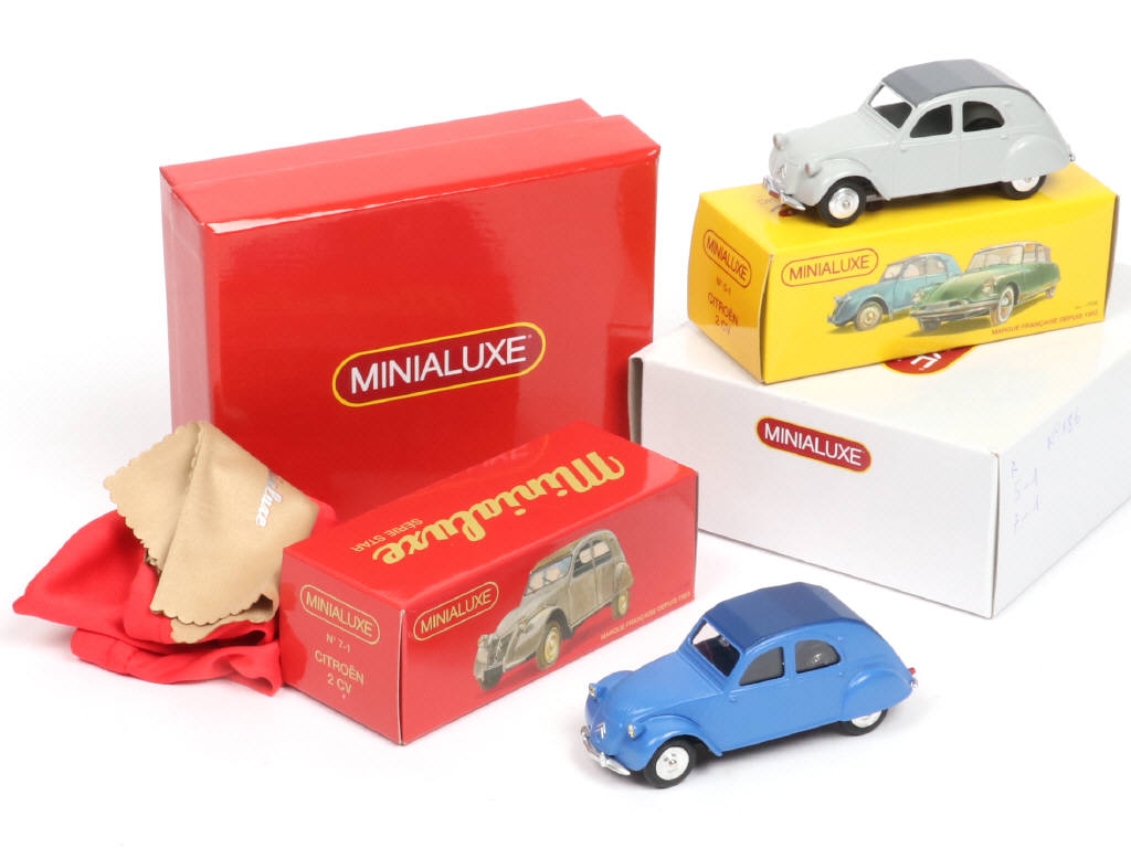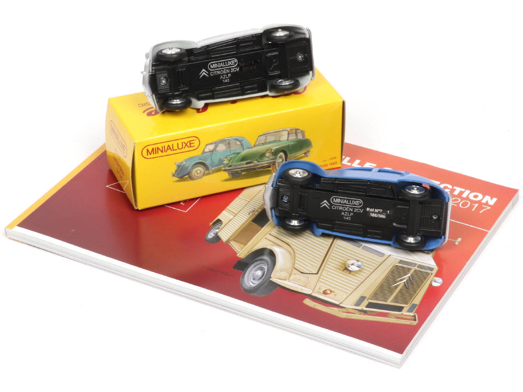 collection 'RETROMOBILE 2014' - contient : CITROËN 2CV (2 exemplaires différents, références : 7-1 & 5-1) - série limitée numérotée 386/500 exemplaires - on y joint un catalogue 'NOUVELLE COLLECTION 2016-2017' de la marque