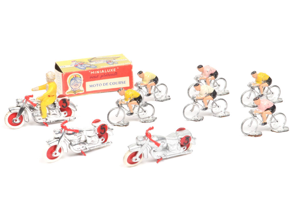 MINIALUXE (FRANCE) Ensemble de 6 coureurs du Tour de France, un motard & 3 motos de courses