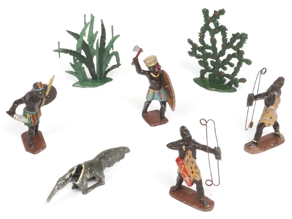 MIGNALU (FRANCE) Ensemble de 4 guerriers africains, 2 plantes & un tamanoir
