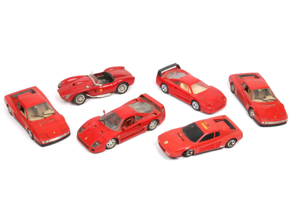 échelle 1/18ème - plus ou moins encrassé - avec manques & parties cassées - 2 modèles avec moteur à piles (non testés - faisant office de radio) - comprend notamment les marques : BBURAGO, REEL & POLISTIL