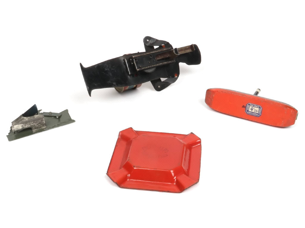 fabrication en tôle & bois - hauteur du plus grand : 17 cm - 2 modèles avec mécanismes (fonctionnels) - on y retrouve notamment les marques : JAPY & P.W.