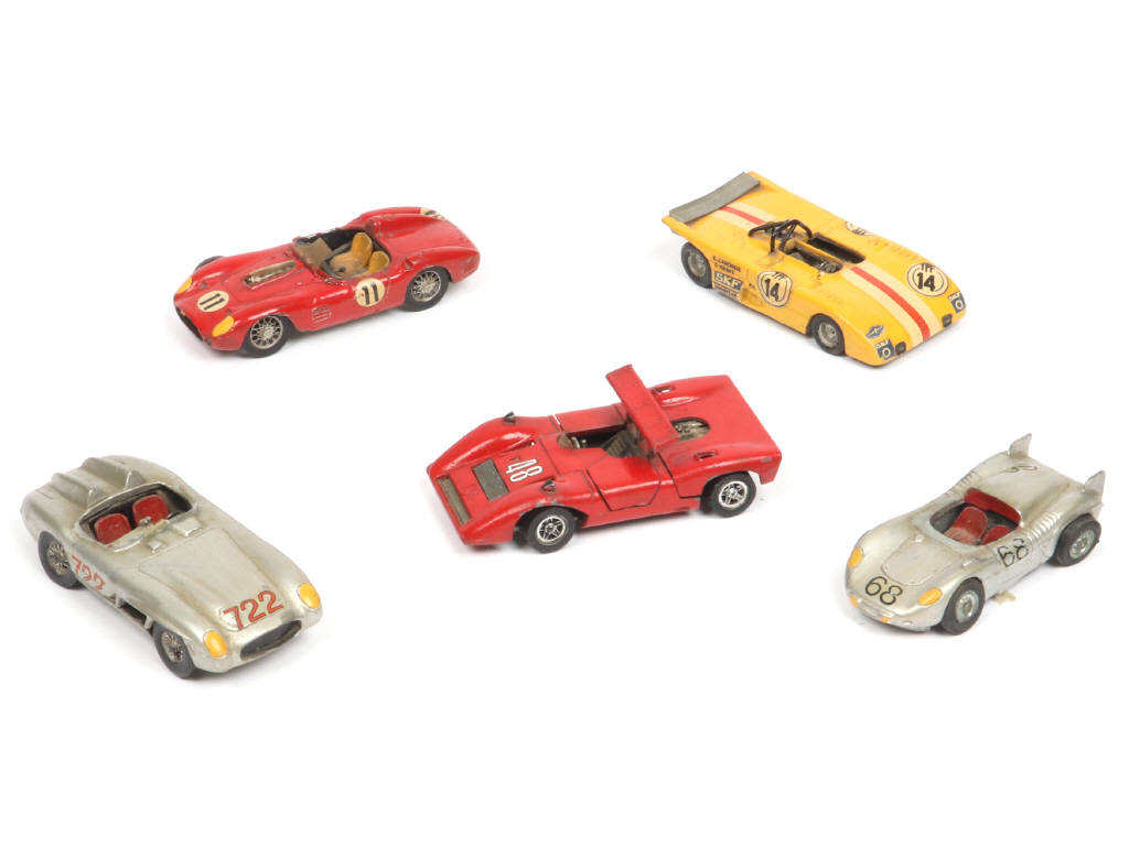 peinture de qualité plus ou moins médiocre - comprend notamment les modèles : MERCEDES, FERRARI & LOLA - avec manques & parties cassées - on y joint une FERRARI de la marque de la marque MEBETOYS (série SPUTAFUOCO - état 'R')