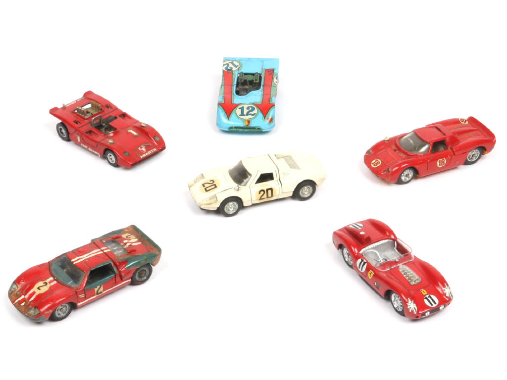 comprend les modèles : PORSCHE, FIAT, FERRARI & FORD - on y retrouve les marques : MERCURY, POLITOYS, MEBETOYS & BRUMM - petits manques & parties cassées