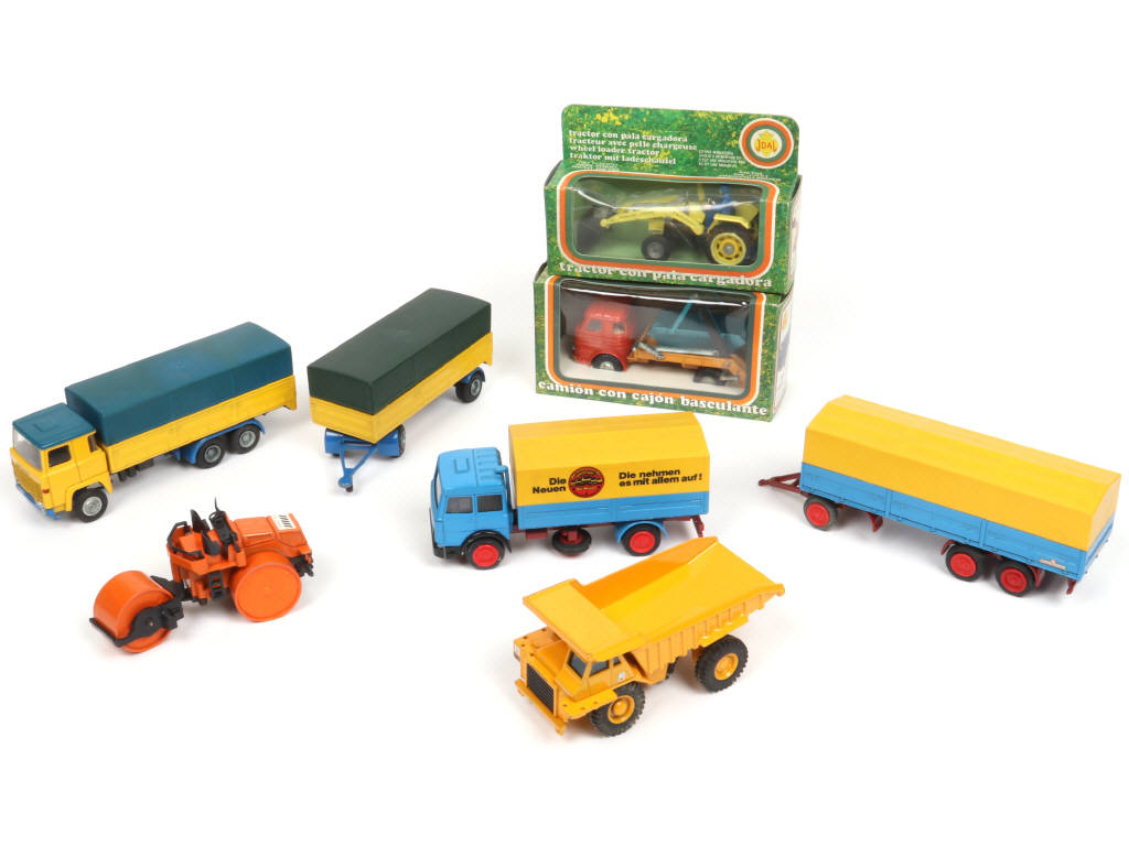 comprend les modèles : SCANIA, MAGIRUS, CATERPILLAR & PEGASO - avec petits manques - on y retrouve notamment les marques : NACORAL & JOAL - 2 modèles en boite (état 'b')
