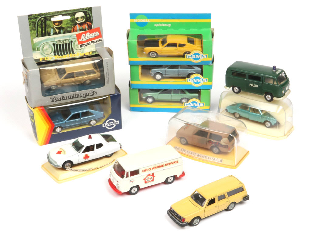 comprend notamment les modèles : CITROEN, VOLVO, VOLKSWAGEN, AUDI & RANGE ROVER - on y retrouve les marques : SCHUCO, GAMA, PILEN & MIRA - 6 modèles en boite (état 'b')