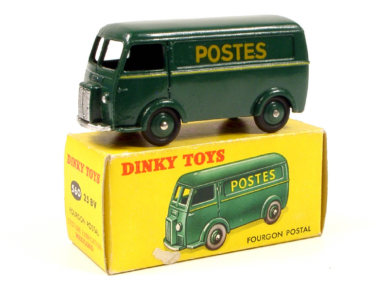 DINKY TOYS (FRANCE) 25BV PEUGEOT D3A 'POSTES' (version avec inscriptions en décalques & 1er type) vert foncé