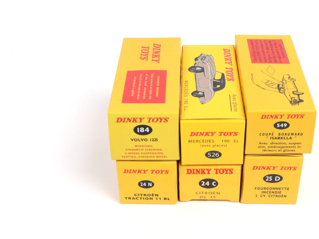 Réedition de la marque : DINKY TOYS - on y retrouve notamment les modèles : MERCEDES 190 SL & CITROËN DS 19 - possibilité de manques ou parties cassées